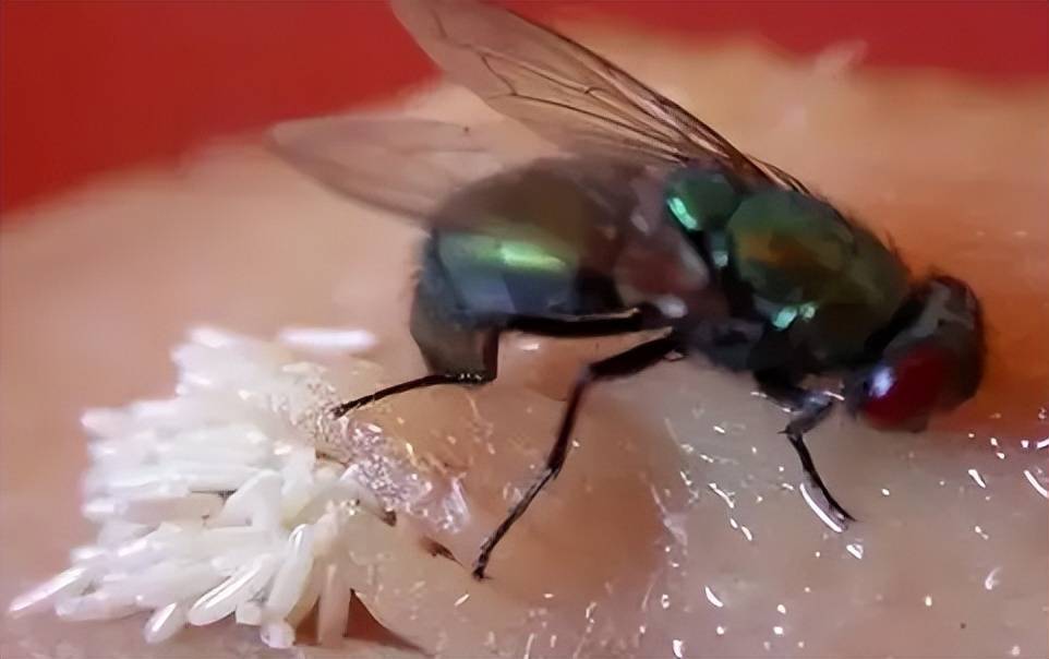 家蝇的繁殖能力也是极强,具有一次交配可终身产卵的生理特点,只要在温度30℃左右,完成整个生活史只需10—12天历经卵、幼虫、蛹、和成虫4个阶段。雌蝇一生可产卵5-6次,每次产100-150粒左右,形态类似大米状,这个数字是很吓人了,这么多的家蝇会对日常生活带来多少的困扰,稍稍没预防好一大家子就蝇拥而出。